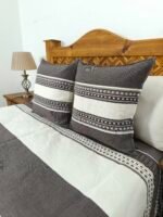 Sé el primero en valorar “Juego de Colcha Artesanal con Cojines y Fundas – Algodón Chocolate con Natural.”