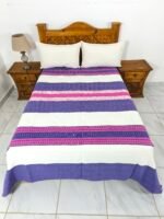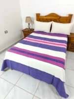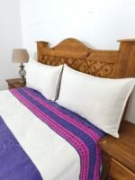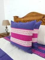 Sé el primero en valorar “Juego de Colcha Artesanal con Cojines y Fundas – Algodón Morado Natural Detalles en Rosa”