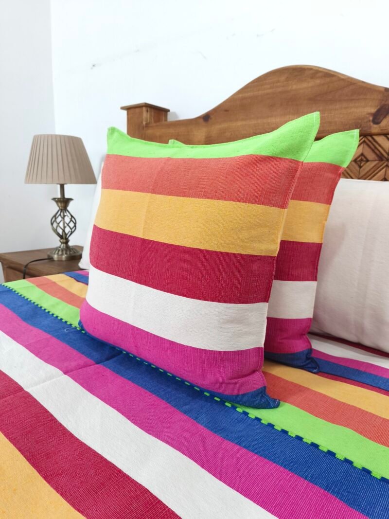 Sé el primero en valorar “Juego de Colcha Artesanal con Cojines y Fundas – Algodón Multicolor”