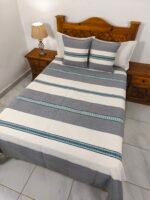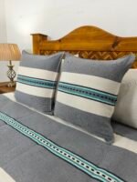 Sé el primero en valorar “Juego de Colcha Artesanal con Cojines y Fundas – Algodón Gris Oxford con Natural Cabecerita de colores.”
