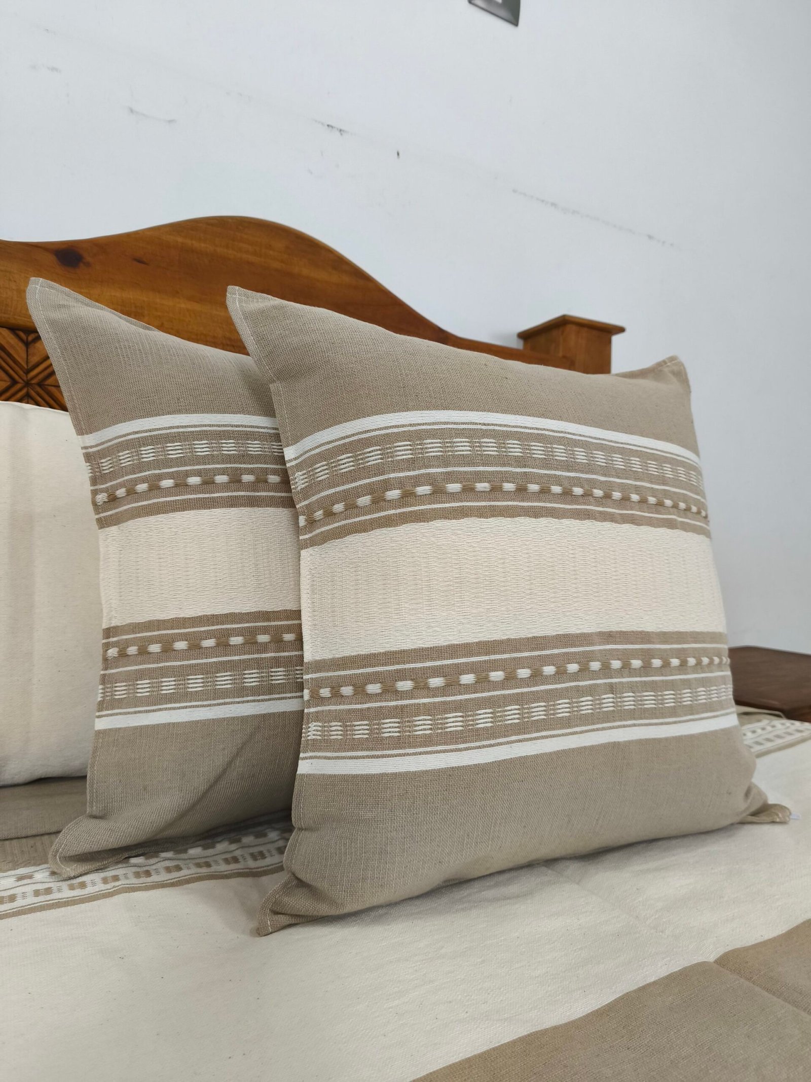 Sé el primero en valorar “Juego de Colcha Artesanal con Cojines y Fundas – Algodón Café Bajo con Natural”