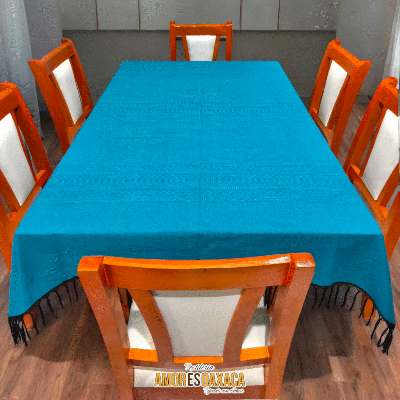 Mantel Artesanal Oaxaqueño Todo Turquesa de 4/6/8/10 Sillas – Hecho en Oaxaca