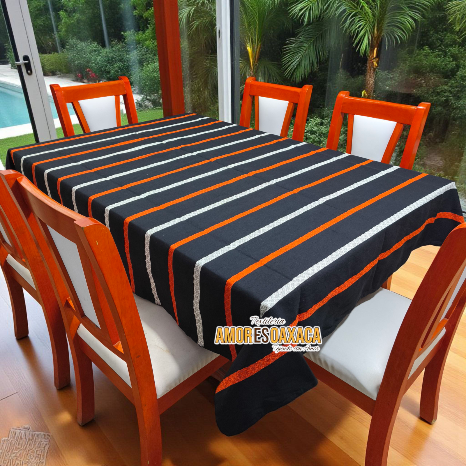 Mantel Artesanal Oaxaqueño Todo    Negro Día de Muerto de 4/6/8/10 Sillas – Hecho en Oaxaca