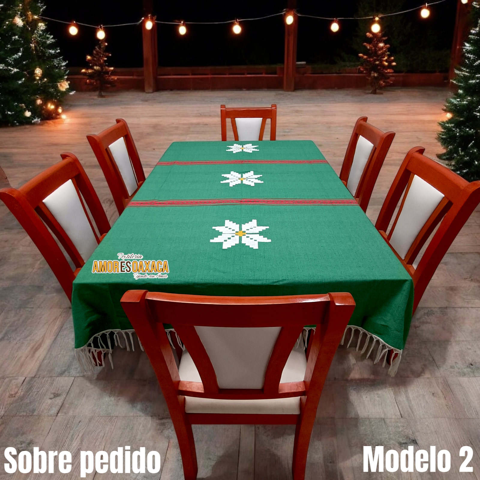 Mantel Artesanal Oaxaqueño Navideño Todo Natural ( 3 NOCHEBUENA ROJO ) de 4/6/8/10 Sillas – Hecho en Oaxaca (Modelo 4)