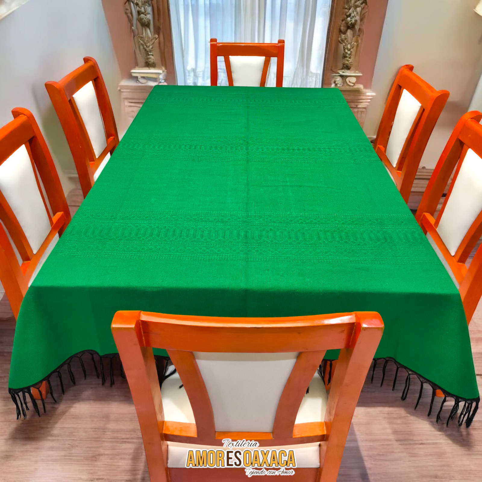Mantel Artesanal Oaxaqueño Todo Verde Bandera de un solo tono de 4/6/8/10 Sillas – Hecho en Oaxaca