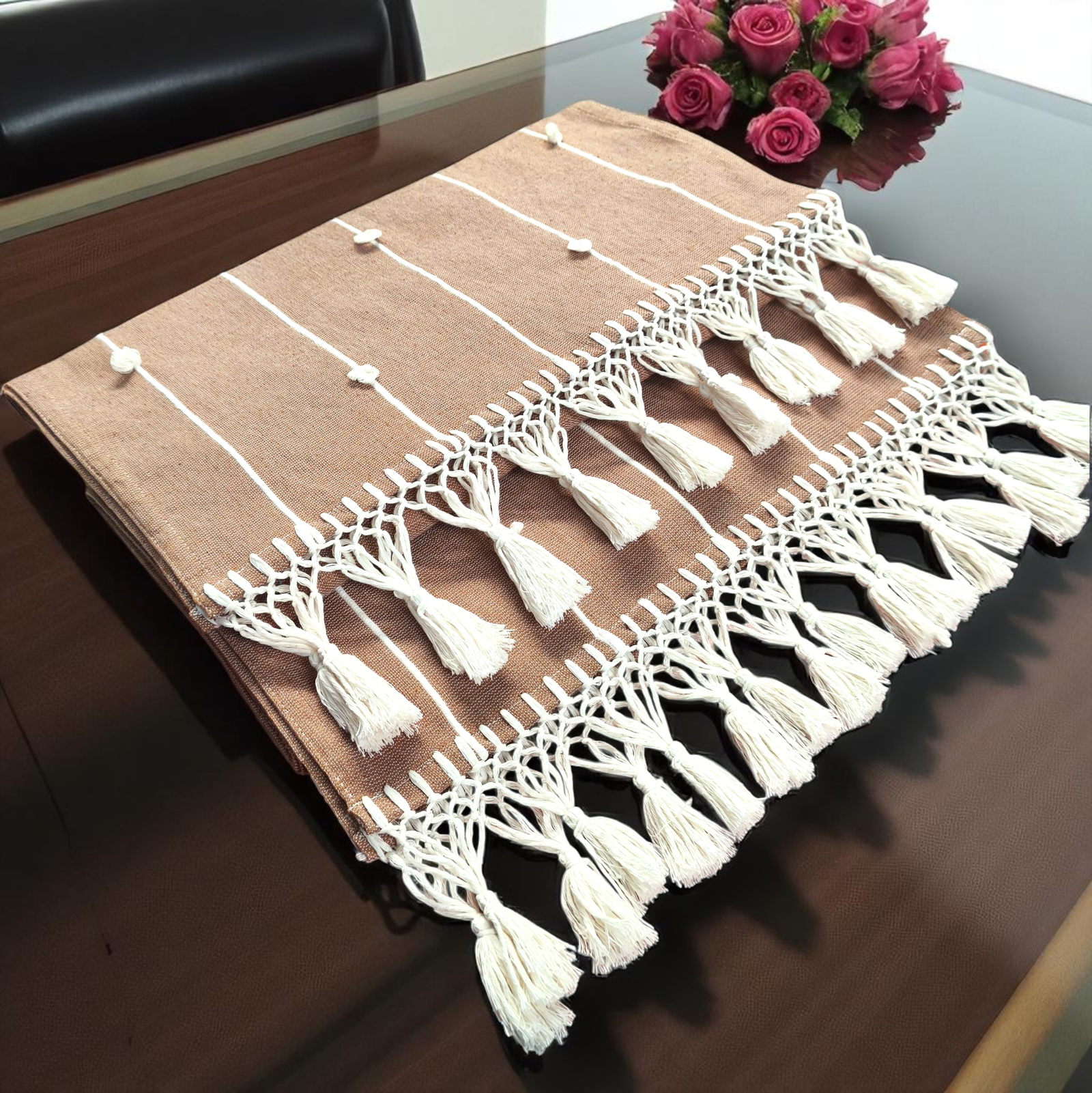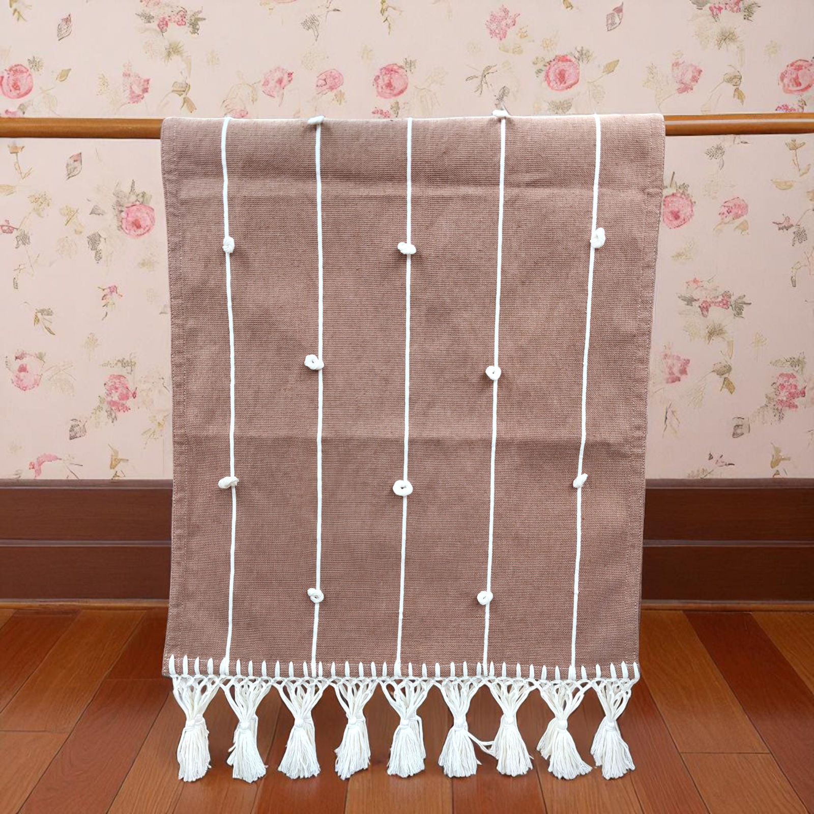 Pie de cama artesanal de algodón – Diseño de globitos café con blanco, tejido en Oaxaca